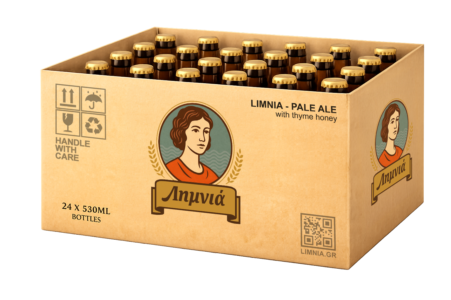 At its core are three elements that define it: the thyme honey of Lemnos, which adds aromatic depth and a discreet sweetness, the “Limnos” wheat variety, which contributes to its body and identity, and the aromatic hops, which bring freshness and a modern pale ale expression.